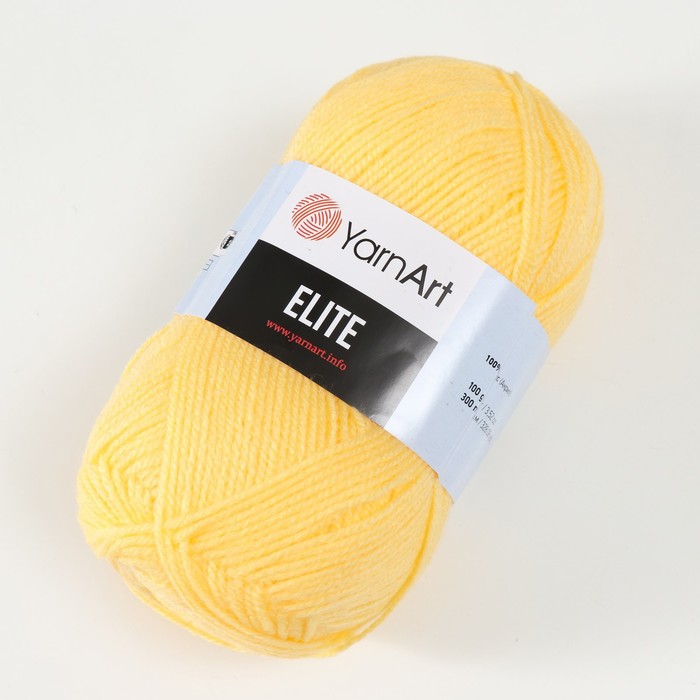 Пряжа для вязания спицами, крючком YarnArt, Elite, 100% акрил, 300 м/100 г, (216 св. жёлтый) — Характеристики