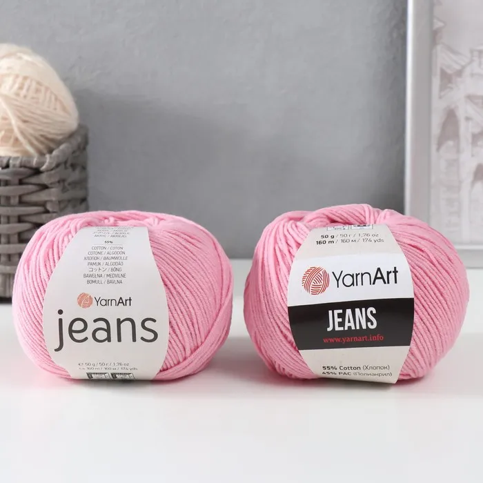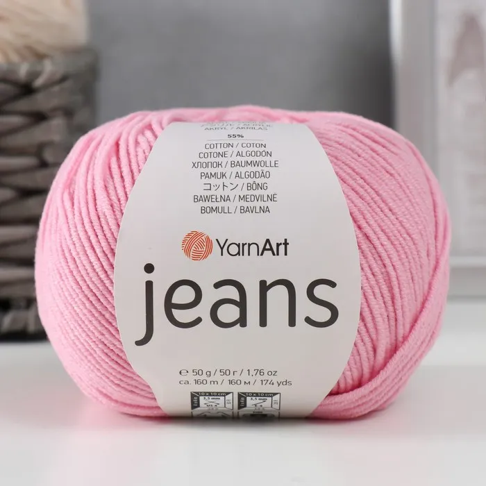 Пряжа для вязания спицами, крючком YarnArt, Jeans, 55% хлопок, 45% акрил, 160 м/50 г, (36 св. розовый) — Характеристики