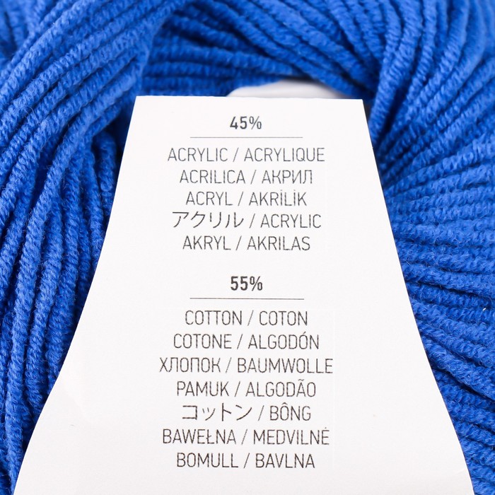 Пряжа для вязания спицами, крючком YarnArt, Jeans, 55% хлопок, 45% акрил, 160 м/50 г, (47 василёк) — Характеристики