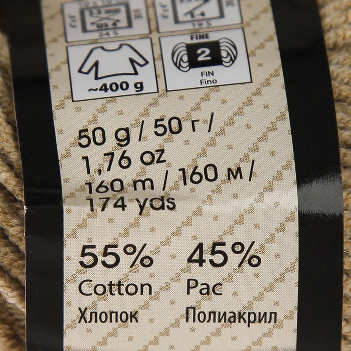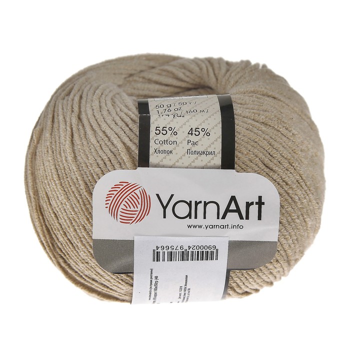 Пряжа для вязания спицами, крючком YarnArt, Jeans, 55% хлопок, 45% акрил, 160 м/50 г, (48 бежевый) — Характеристики