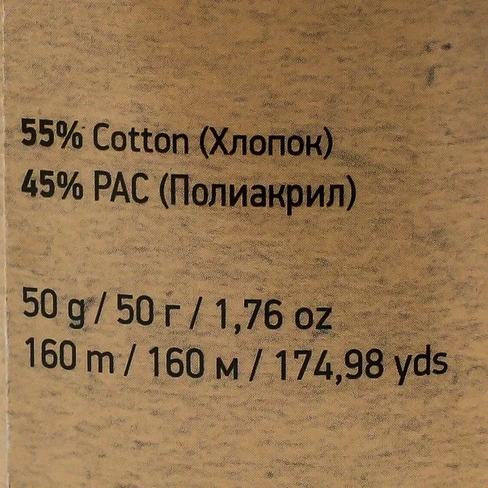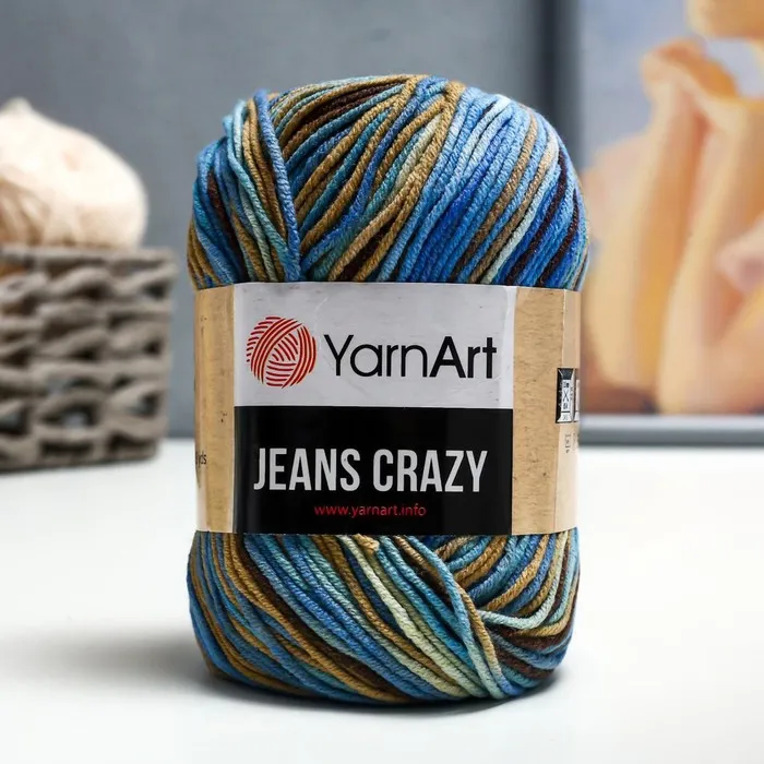 Пряжа для вязания спицами, крючком YarnArt, Jeans crazy, 55% хлопок, 45% акрил, 160 м/50 г, (7202 принт) — Характеристики