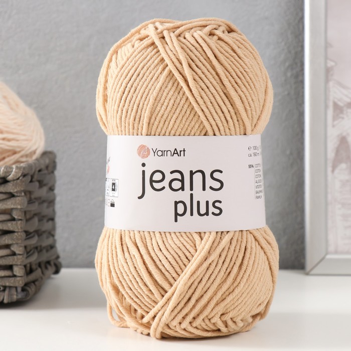 Пряжа для вязания спицами, крючком YarnArt, Jeans plus, 55% хлопок, 45% акрил, 160 м/100 г, (07 бежев) — Характеристики