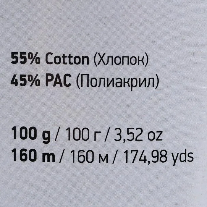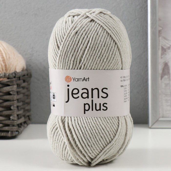 Пряжа для вязания спицами, крючком YarnArt, Jeans plus, 55% хлопок, 45% акрил, 160 м/100 г, (49 серый) — Характеристики