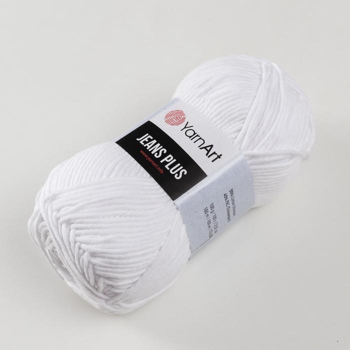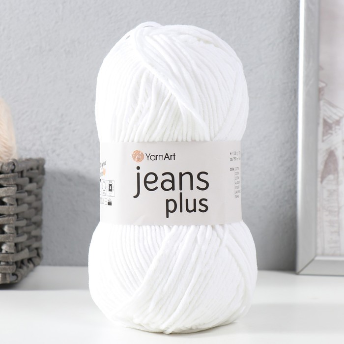 Пряжа для вязания спицами, крючком YarnArt, Jeans plus, 55% хлопок, 45% акрил, 160 м/100 г, (62 белый ) — Характеристики