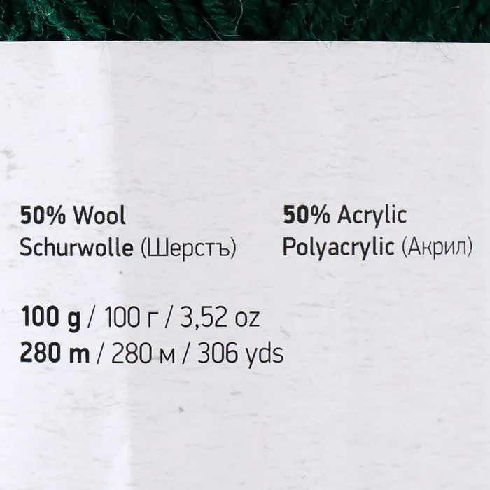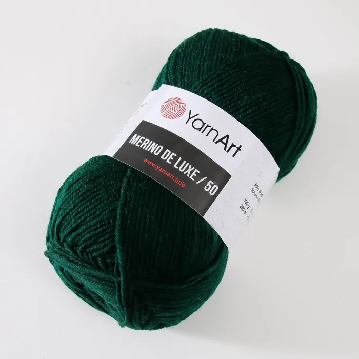 Пряжа для вязания спицами, крючком YarnArt, Merino de luxe 50, 50% шерсть, 50% акрил, 280 м/100 г, (590 т. зелёный) — Характеристики
