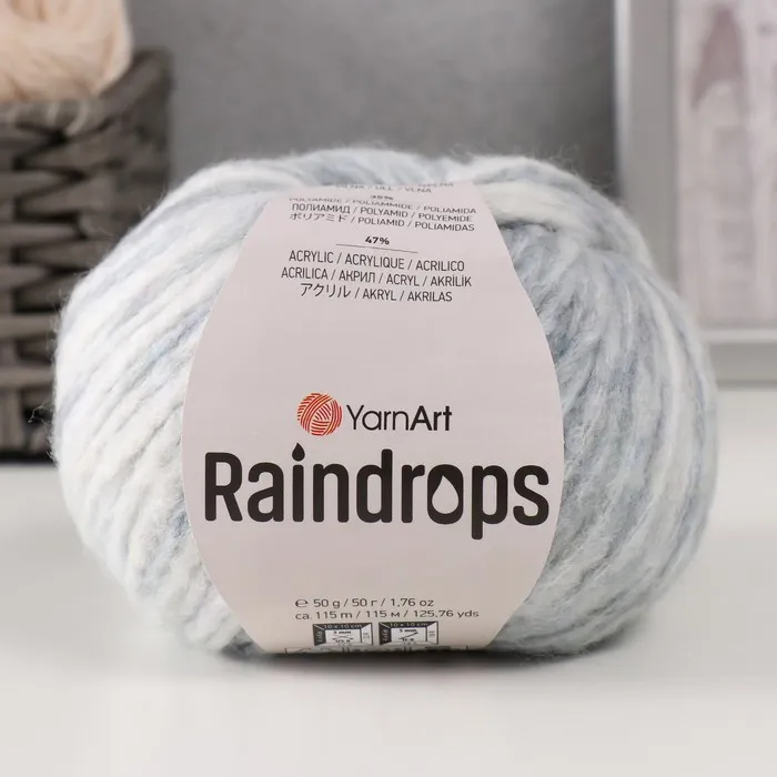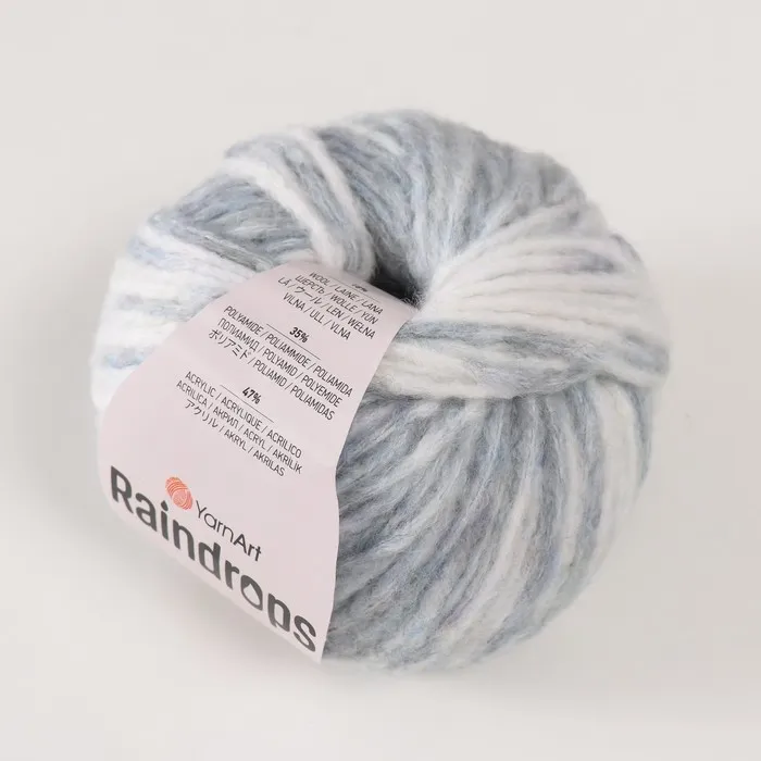 Пряжа для вязания спицами, крючком YarnArt, Raindrops, 18% шерсть, 35% полиамид, 47% акрил, 115 м/50 г, (2906 св. серо-белый) — Характеристики