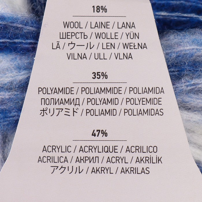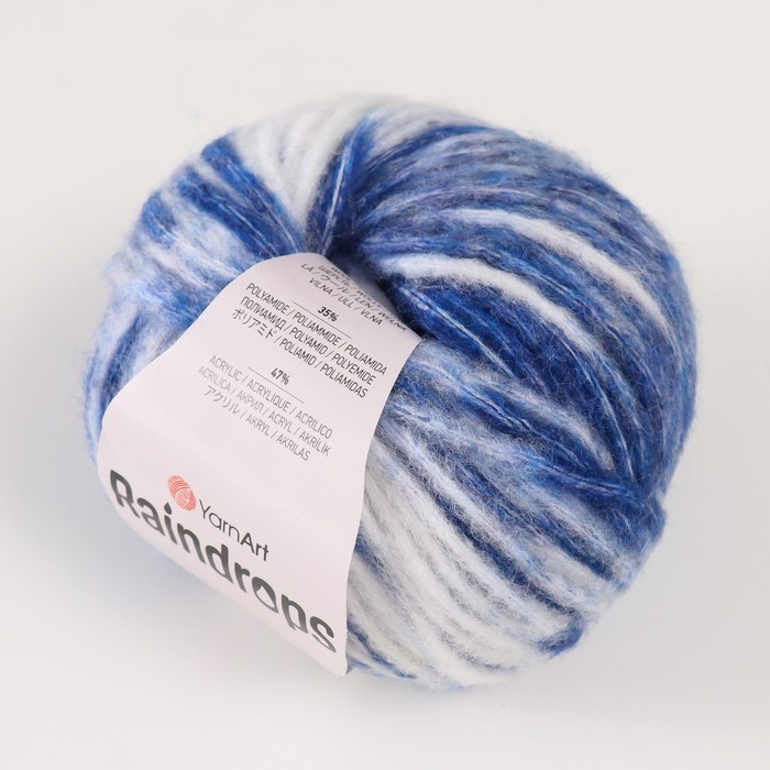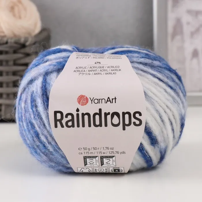 Пряжа для вязания спицами, крючком YarnArt, Raindrops, 18% шерсть, 35% полиамид, 47% акрил, 115 м/50 г, (2907 синий меланж) — Характеристики