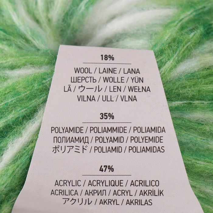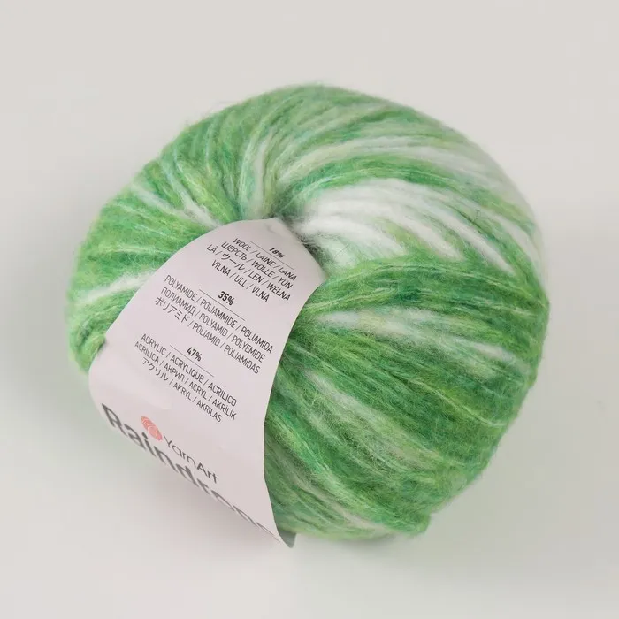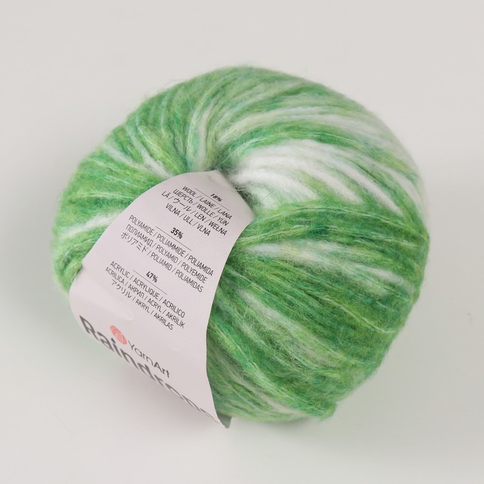 Пряжа для вязания спицами, крючком YarnArt, Raindrops, 18% шерсть, 35% полиамид, 47% акрил, 115 м/50 г, (2912 зелёный меланж) — Характеристики