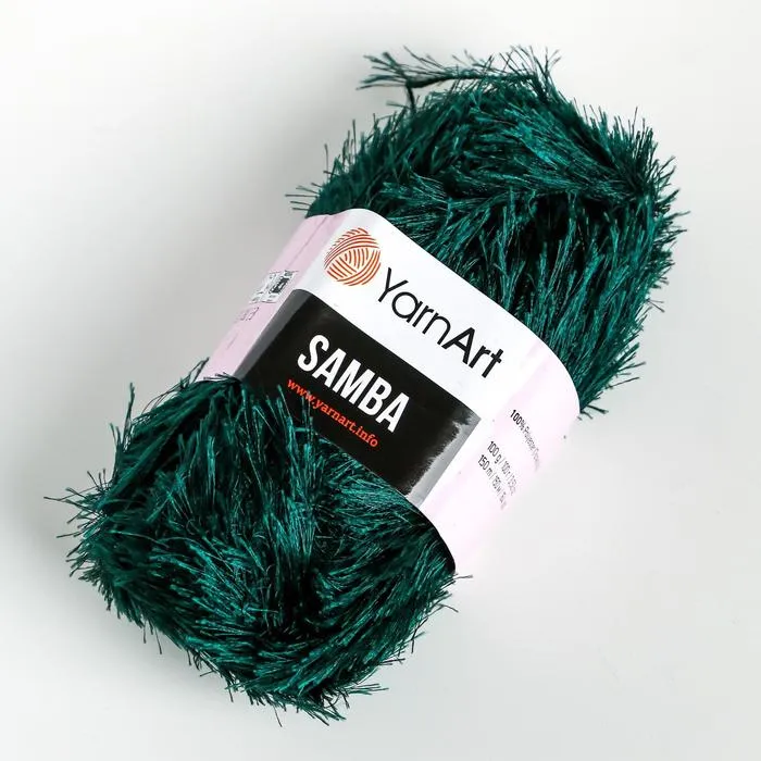 Пряжа для вязания спицами, крючком YarnArt, Samba, 100% полиэстер, 150 м/100 г, (590 изумруд) — Характеристики