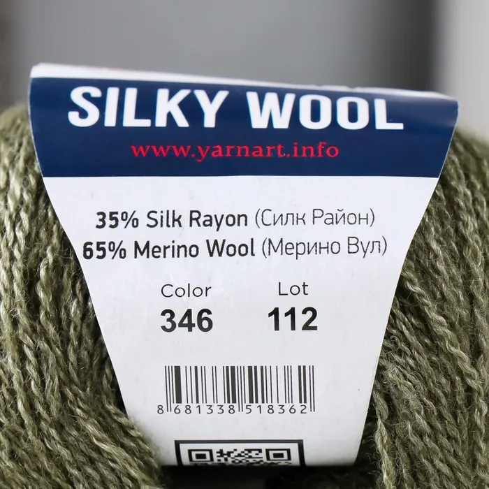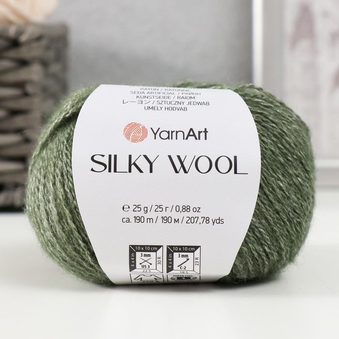 Пряжа для вязания спицами, крючком YarnArt, Silky Wool, 35% силк район, 65% мерино вул, 190 м/25г, (346 полынь) — Характеристики