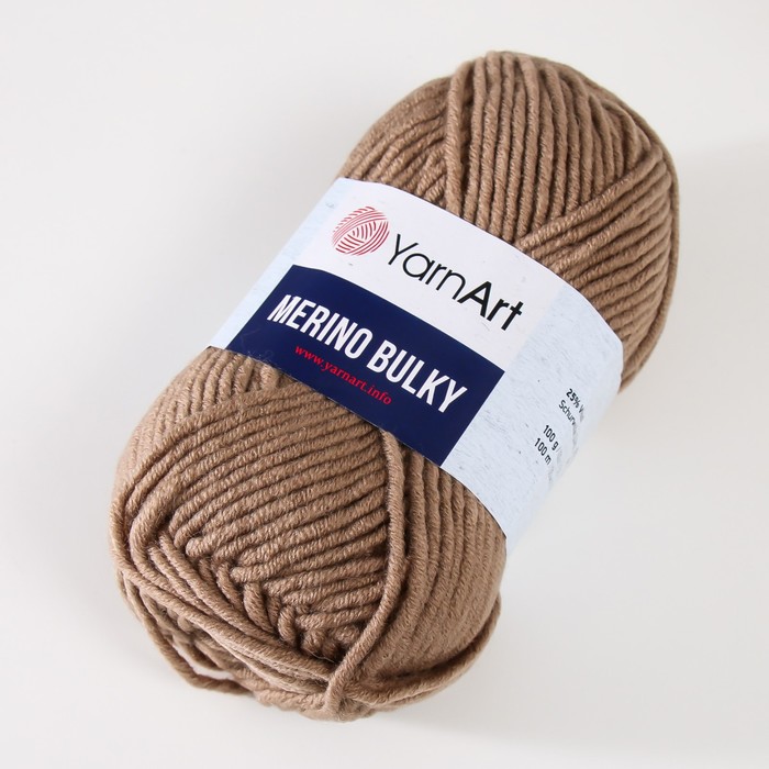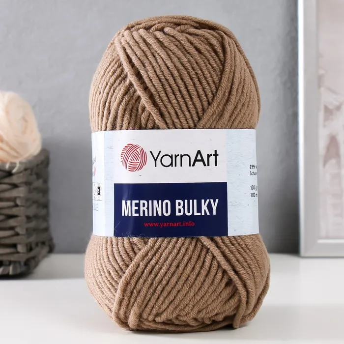 Пряжа "Merino bulky" 25% шерсть 75% акрил 100м/100гр (218 серо-бежевый) — Характеристики