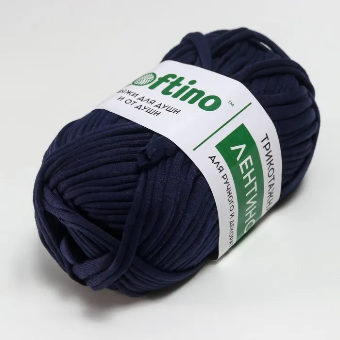 Пряжа трикотажная для вязания ключком и спицами 100% хлопок Softino «Лентино mini», 100 г, 40 м, цвет 30, т. синий — Характеристики