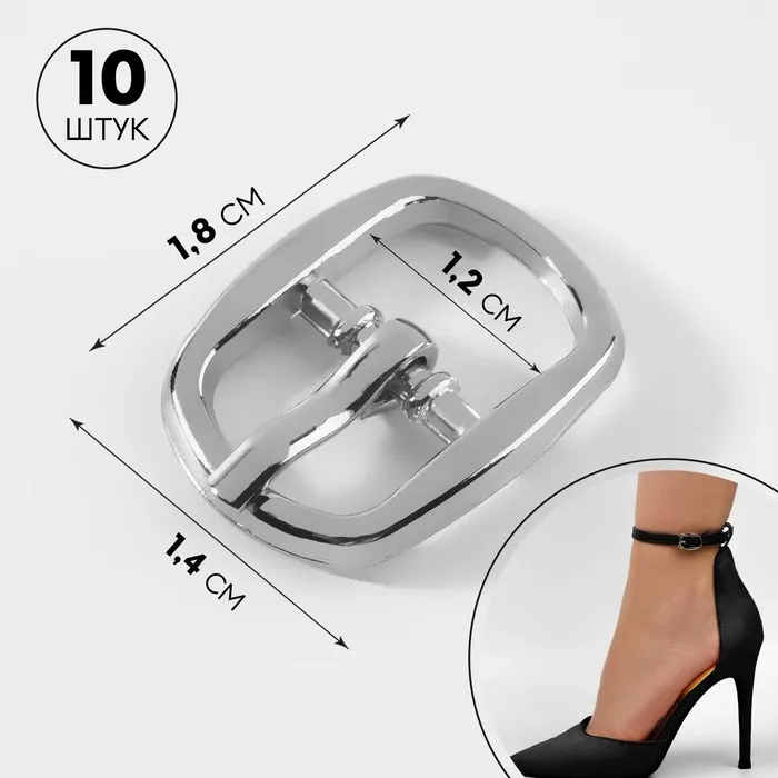Пряжка, 1.8×1.4 см, 12 мм, 10 шт., цвет серебряный — Характеристики