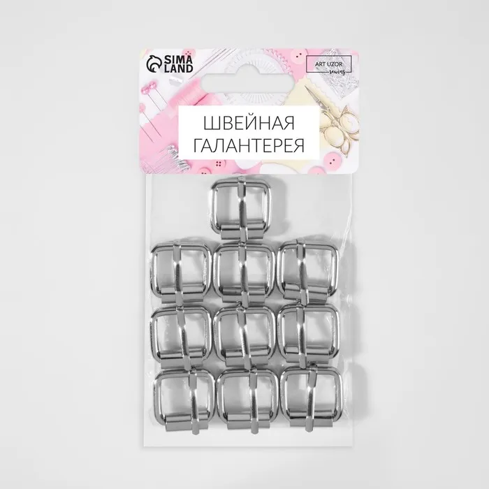 Пряжка, 1.9×2.2 см, 16 мм, 10 шт., цвет серебряный — Характеристики
