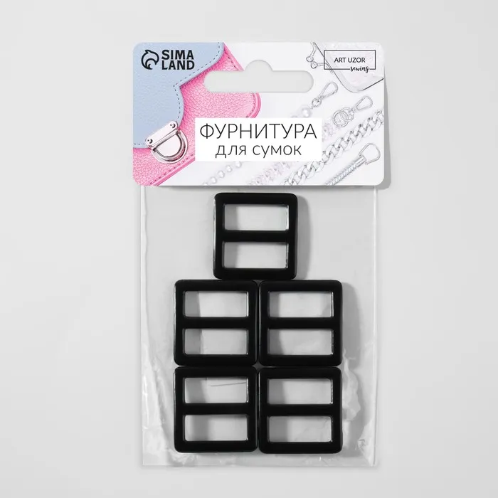 Пряжка регулирующая, двухщелевая, вн. ширина=20 мм, s=2.5 мм, 5 шт., матовая, чёрная — Характеристики