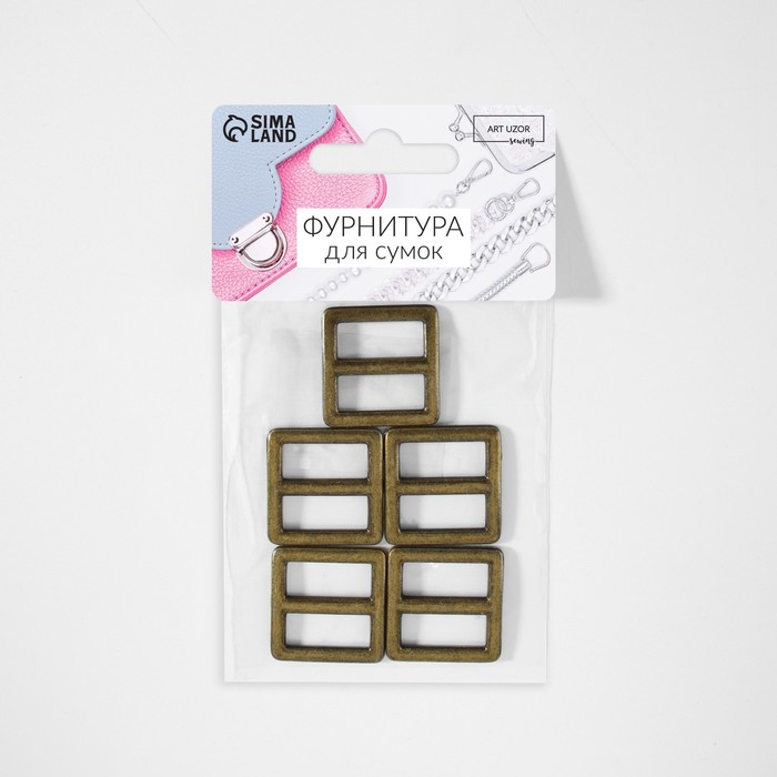 Пряжка регулирующая, двухщелевая, вн. ширина=20 мм, s=2.5 мм, 5 шт., цвет бронзовый — Характеристики