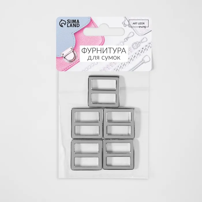 Пряжка регулирующая, двухщелевая, вн. ширина=20 мм, s=2.5 мм, 5 шт., цвет серебряный — Характеристики