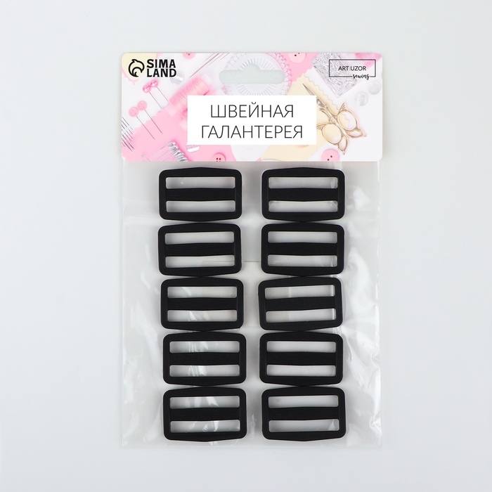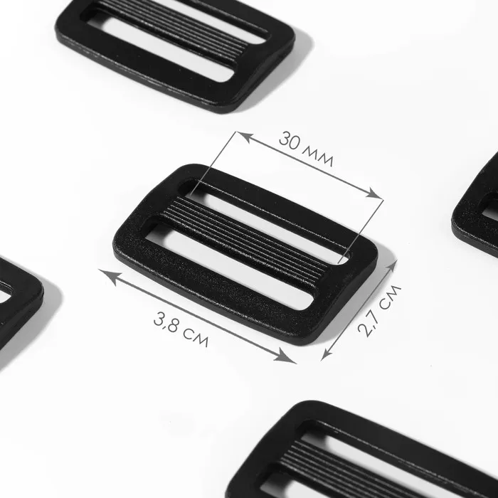 Пряжка регулирующая, двухщелевая, вн. ширина=30 мм, s=4 мм, 10 шт., чёрная — Характеристики