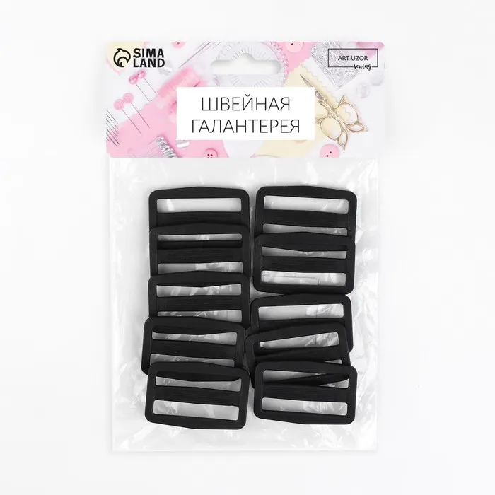 Пряжка регулирующая, двухщелевая, вн. ширина=38 мм, s=3.5 мм, 10 шт., чёрная — Характеристики