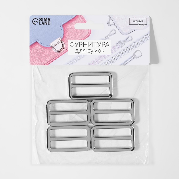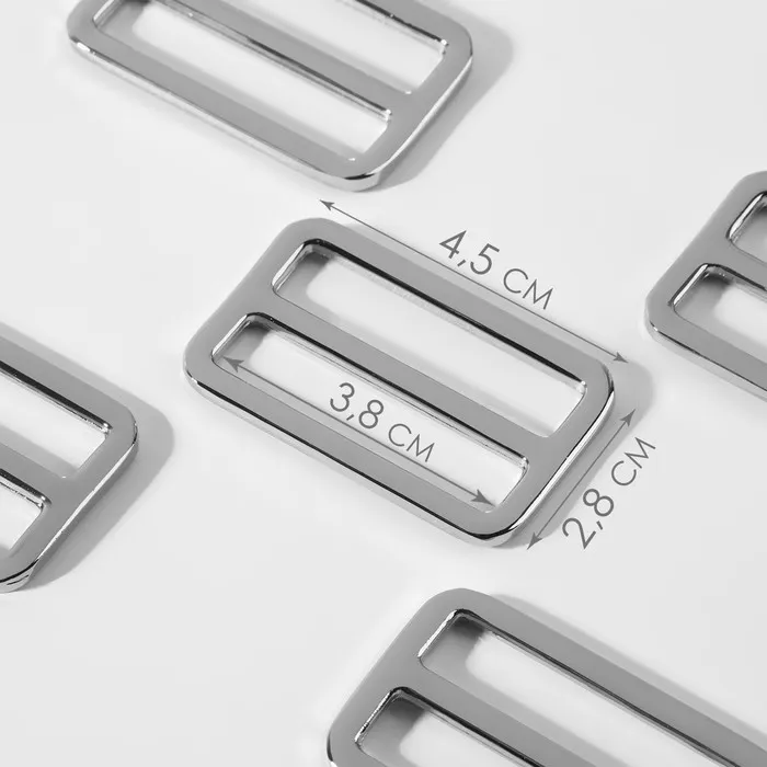 Пряжка регулирующая, двухщелевая, вн. ширина=38 мм, s=3.5 мм, 5 шт., цвет серебряный — Характеристики