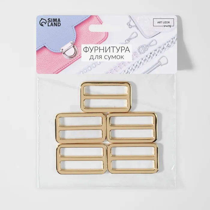 Пряжка регулирующая, двухщелевая, вн. ширина=38 мм, s=3.5 мм, 5 шт., цвет золотой — Характеристики