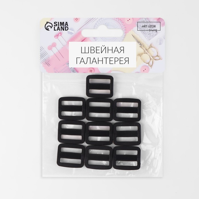Пряжка регулирующая, двухщелевая, внутренняя ширина - 20 мм, толщина - 3,5 мм, 10 шт, цвет чёрный — Характеристики
