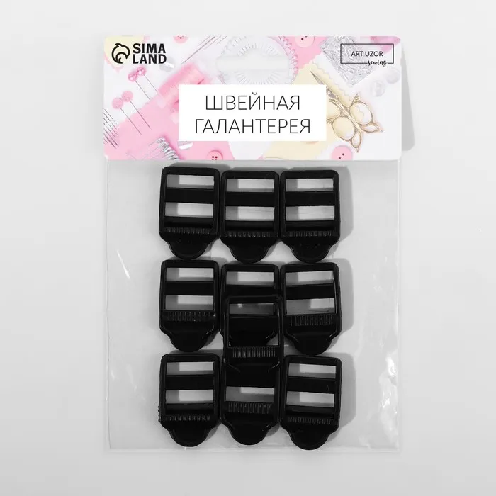 Пряжка регулирующая, трёхщелевая, вн. ширина=20 мм, s=2 мм, 10 шт., чёрная — Характеристики