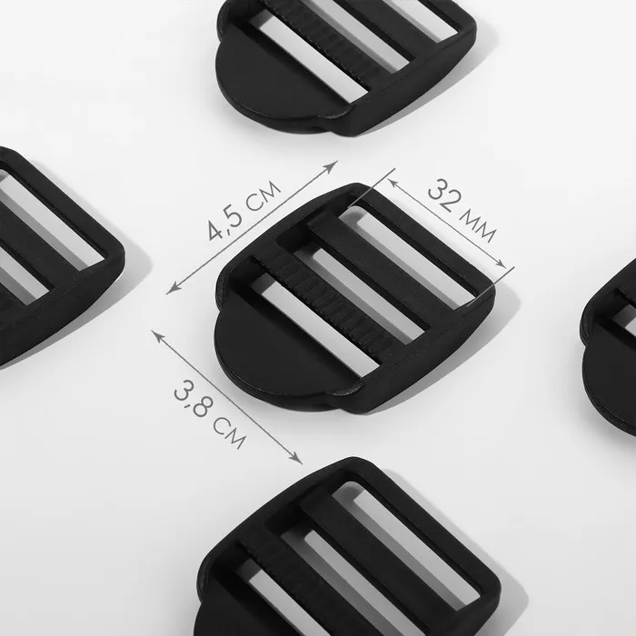 Пряжка регулирующая, трёхщелевая, вн. ширина=32 мм, s=3 мм, 10 шт., чёрная — Характеристики