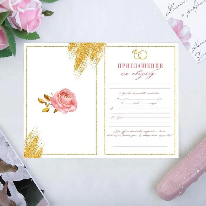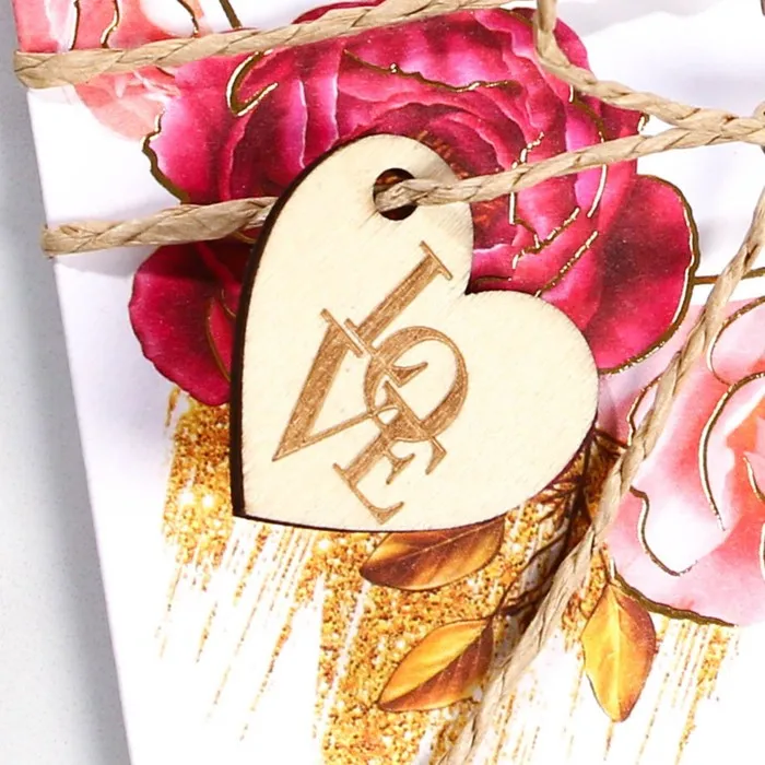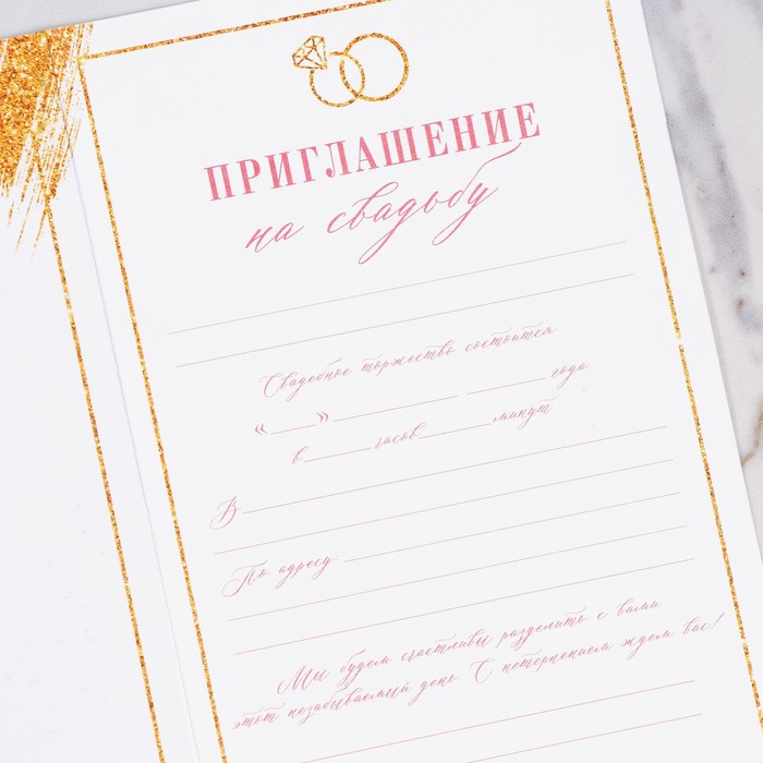 Когда дата и время бракосочетания уже известны, и вы определились со списком гостей, необходимо оповестить их о предстоящем празднике. Существует традиция делать персональные приглашения с указанием времени и даты мероприятия. Но перед свадьбой столько всего надо успеть, что на изготовление десятков открыток просто не остаётся времени. В этом случае вам придёт на помощь уникальное приглашение. Изделие выполнено из белой крафтовой бумаги плотностью 300 грамм и дополнено деревянным украшением в виде сердца. Это придаёт дорогой и роскошный вид. Текст приглашения содержит свободные поля для имени адресата, времени, даты и адреса проведения мероприятия. Это потрясающее приглашение достойно стать частью такого важного события в жизни, как свадьба!