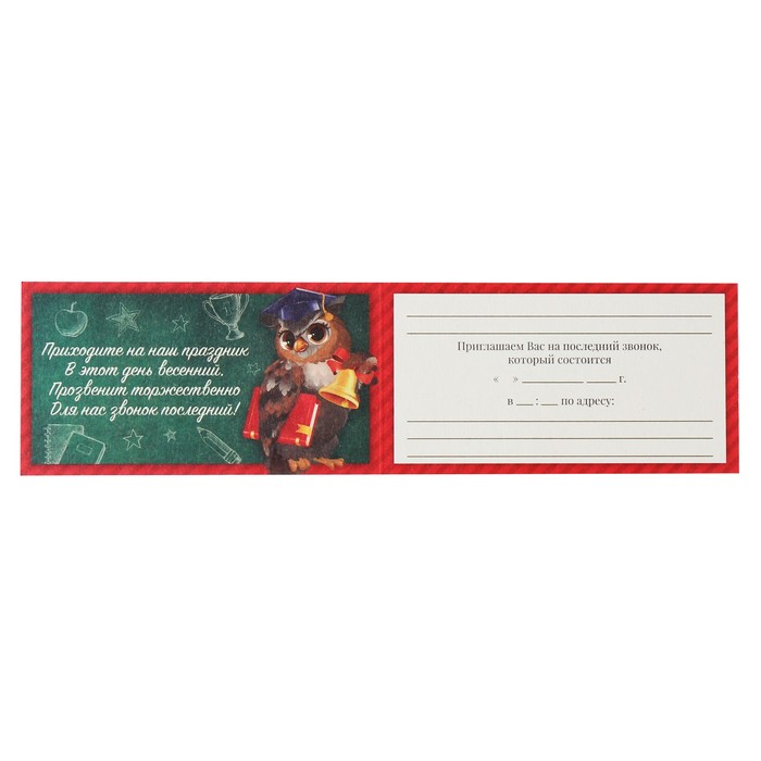 Приглашение на выпускной «Последний звонок», 13 х 6,5 см — Характеристики