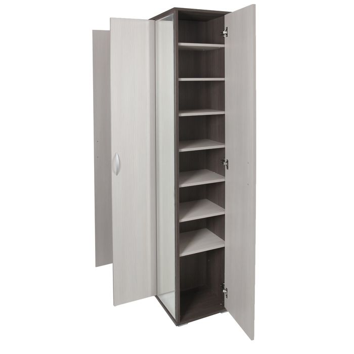 Прихожая имеет боковую нишу с 7 полками для хранения обуви. В шкафу с распашными дверьми расположена штанга для вешалок.