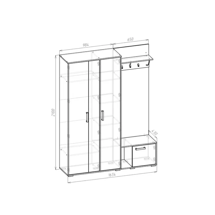 - Универсальность: подходит для коридоров, прихожих или холлов, обеспечивая организованное хранение вещей.