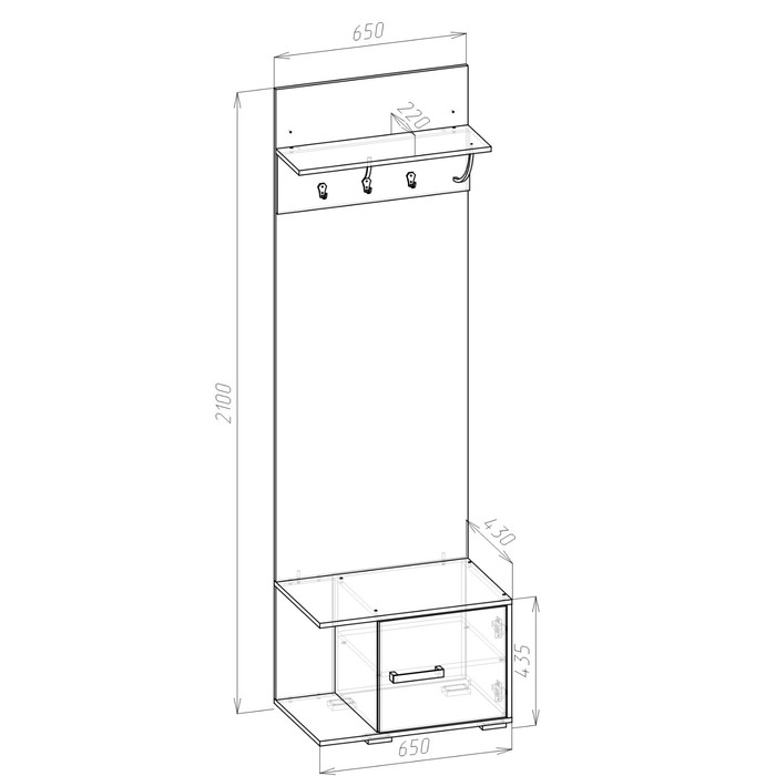 Прихожая «Ника», 650×430×2100 мм, цвет белая — Характеристики