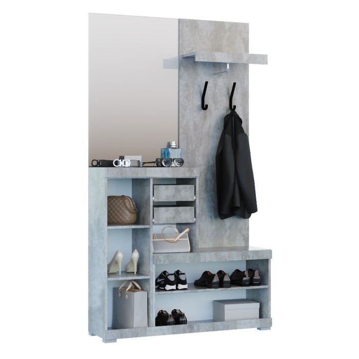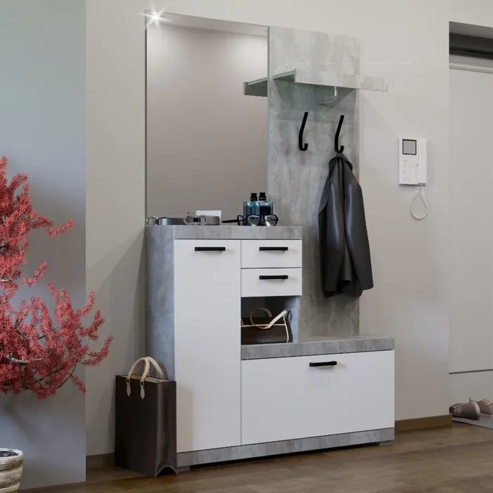 Прихожая №16, 1200x356x2000, Цемент светлый/Белый — Характеристики