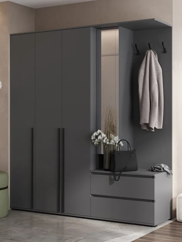 Комплект предметов, предназначенных для обстановки комнаты сразу после входной двери, которая служит как место для хранения верхней одежды и обуви. Включает в себя вешалку с тумбой и шкаф трёхстворчатый.