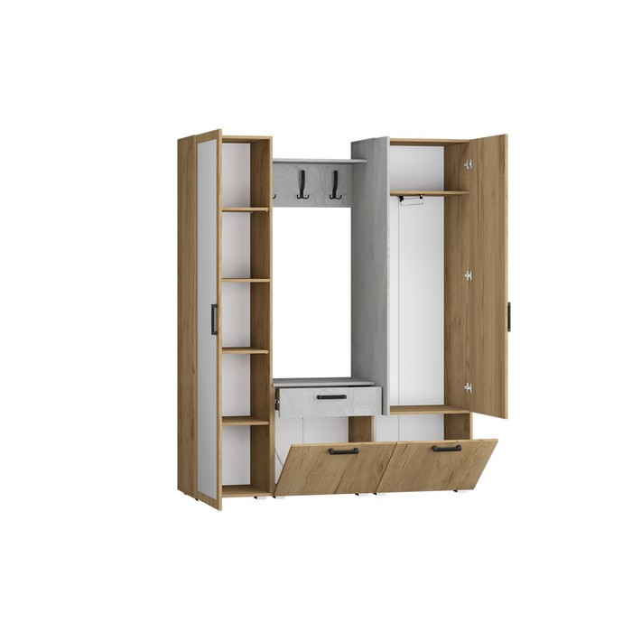 Прихожая «Прайм – 1», 1650×374×2020 мм, цвет дуб крафт золотой/бетонный камень — Характеристики
