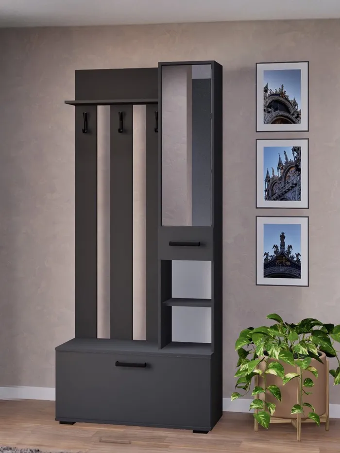 Прихожая с зеркалом «Ника», 910×354×2035 мм, цвет серый графит