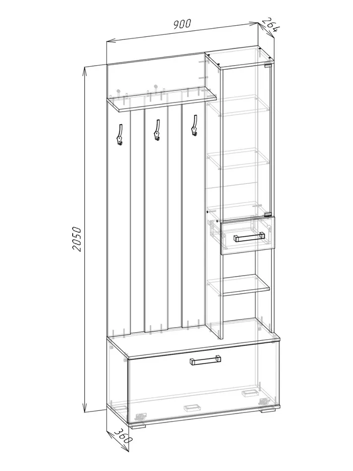 Прихожая с зеркалом «Ника», 910×354×2035 мм, цвет серый графит — Характеристики