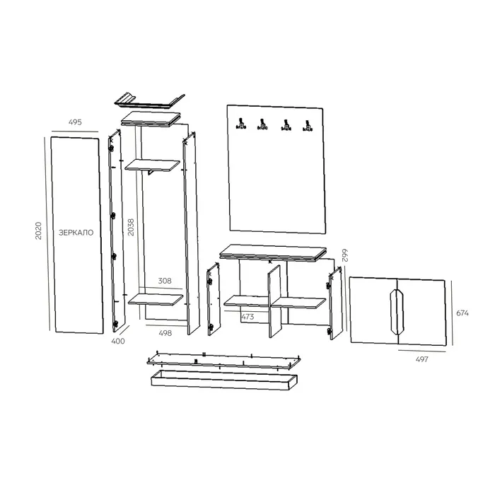 Прихожая «Вега», 1600 х 400 х 2200, Дуб крафт золотой/Торос графит — Характеристики