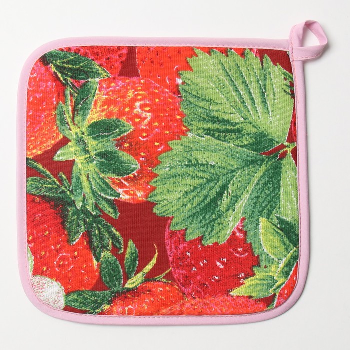 Прихватка 18х18 см, Клубника, рогожка, 100% хлопок
