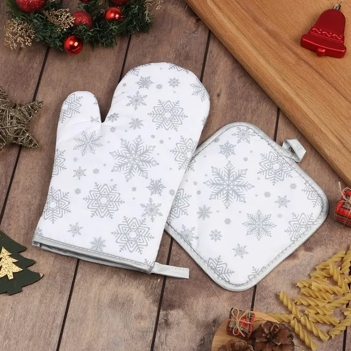 Куханный набор 2 празмер Доляна Снежинки серебро прихватка 17*17 см, варежка 26*16 см,100% п/э