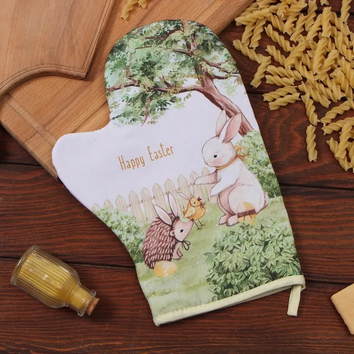 Варежка-прихватка Доляна "Зверьки" 20х28 см, 35% хл, 65% пэ, ватин 250 г/м2