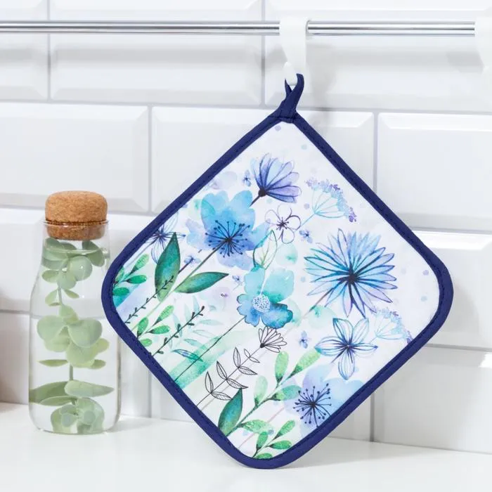 Прихватка Blue flowers, 19×19 см, саржа,100% хлопок, ватин 250 г/м² — Характеристики