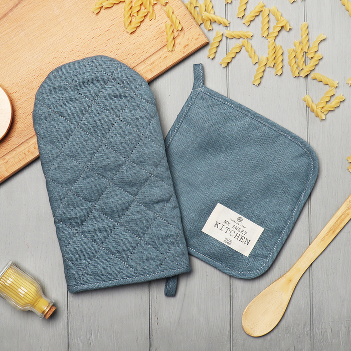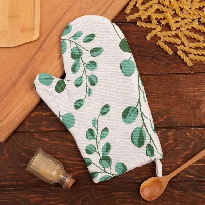 Прихватка создана для ежедневного комфорта и безопасности. Гладкая фактура ткани не цепляется и легко очищается. Чёткая геометрия и средний размер делают её маневренной для работы с ручками кастрюль и удобной для переноски горячей посуды. Сдержанная цветочная тематика рисунка останется актуальной в любое время года.