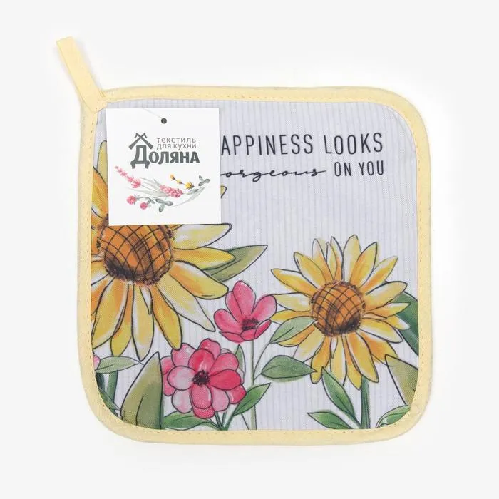 Прихватка Доляна "Подсолнухи" 17х17см габардин, 35% хлопок, 65% п/э, ватин 250г/м2 — Характеристики
