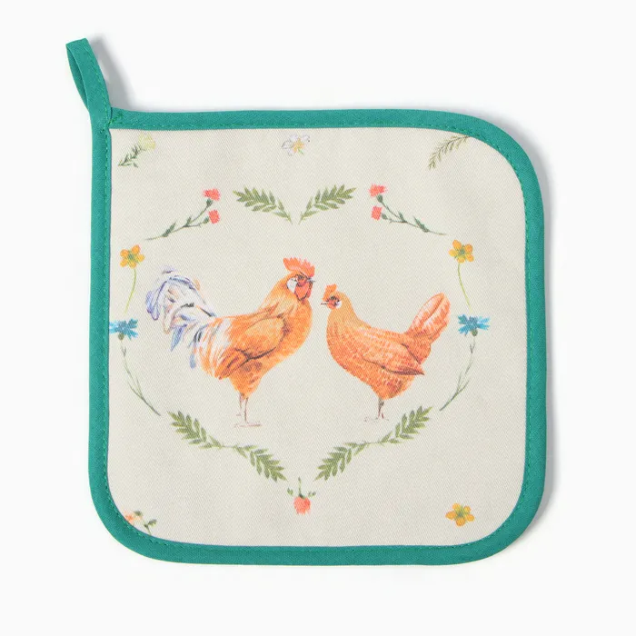 Прихватка Этель "Курочка и петух" 19х19 саржа,100% х/л,ватин 250г/м2 — Характеристики