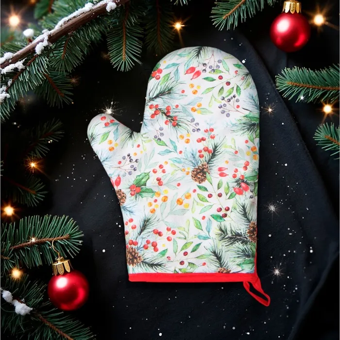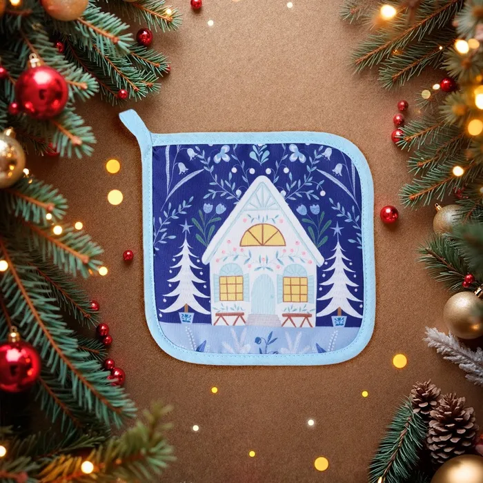 Такой текстиль для кухни несёт в себе настроение. Это практичный подарок на Новый год, который напомнит о волшебстве каждый раз, когда вы берёте его в руки. Прихватка легко вписывается в сервировку праздничного стола, становясь милой деталью в стилистике зимней сказки, и остаётся функциональным помощником в будни.