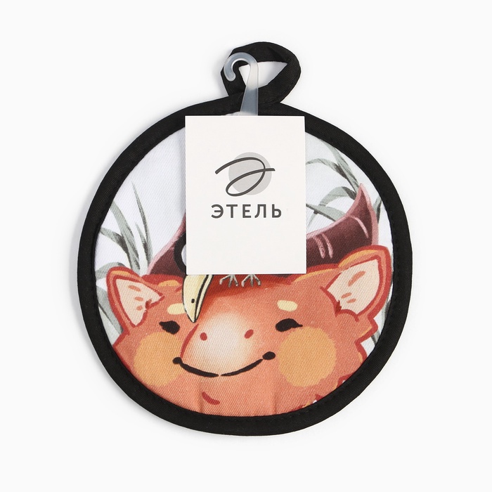 Эта круглая прихватка из хлопка станет тёплым и душевным дополнением вашей кухни в зимние дни. На белом, коричневом или чёрном фоне оживают сказочные новогодние персонажи, создавая атмосферу уюта и ожидания праздника. Плотная саржа из 100% хлопка надёжно защищает руки, а деликатный уход сохраняет яркость рисунка надолго.