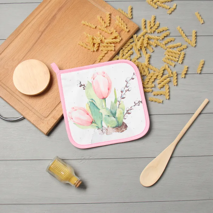 Прихватка Этель"Тюльпаны" 19х19 саржа,100% х/л,ватин 250г/м2 — Характеристики