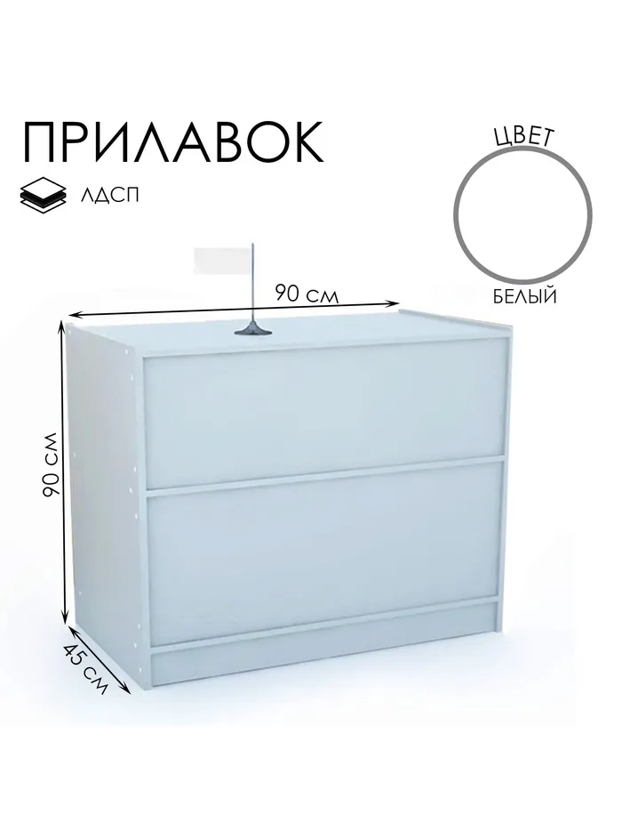 Цвет белый придает прилавку современный и аккуратный вид, который легко сочетается с любым интерьером. ЛДСП материал обеспечивает прочность и долговечность прилавка, делая его устойчивым к повреждениям и нагрузкам, что гарантирует долгий срок службы.